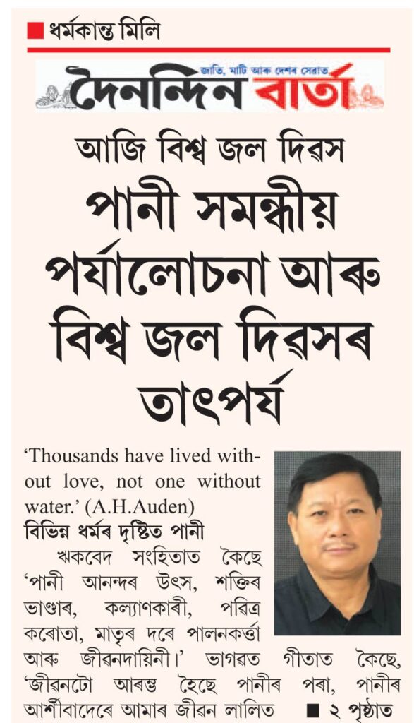 বিশ্ব জল দিৱসঃ উদ্দেশ্য আৰু তাৎপৰ্য-