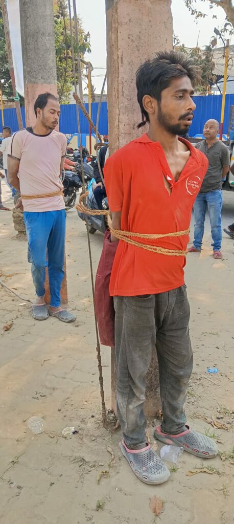 কিন্তু চুৰি কৰাৰ সময়তে স্থানীয় ৰাইজে সন্দেহ কৰি দুয়োকে হাতে-লোটে ধৰা পেলায়। পিছত ক্ষুব্ধ ৰাইজে অভিযুক্ত দুজনক আৰক্ষীৰ হাতত অৰ্পণ কৰে। খবৰ পাই আৰক্ষী ঘটনাস্থলীত উপস্থিত হৈ দুয়োকে আটক কৰি থানালৈ লৈ যায়।
