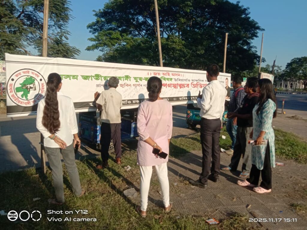 অসমীয়াৰ হিয়াৰ আমঠু, প্ৰাণৰ কণ্ঠশিল্পী জুবিন গাৰ্গৰ কাইলৈ ৫৩ সংখ্যক ওপজা দিনৰ প্ৰাক ক্ষণত আজি অসম জাতীয়তাবাদী যুৱ ছাত্ৰ পৰিষদ (অ:জা:যু:ছা:প:)ৰ উৰিয়াগাঁও আঞ্চলিক সমিতিৰ সৌজন্যত জুবিন গাৰ্গৰ ন্যায়ৰ দাবী জনাই এক গণ স্বাক্ষৰ অভিযান আৰম্ভ কৰে।