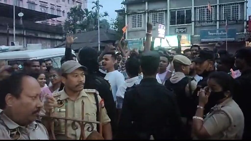 শিলচৰ তাৰাপুৰৰ মদন মোহন ৰোড অঞ্চলত সোমবাৰে পবিত্ৰ ঈদ-উজ-জোহাৰ দিনত গো মাংস কটা লৈ উত্তেজনা। এজন ব্যক্তিৰ ঘৰত গো-মাংস উদ্ধাৰ হোৱা ঘটনাৰ আধাৰত অঞ্চলটোত তীব্ৰ উত্তেজনা সৃষ্টি হৈছে। ইফালে, স্থানীয় মহিলা আৰু পুৰুষে ৰাজপথলৈ ওলাই আহি প্ৰতিবাদ সাব্যস্ত কৰাত পৰিস্থিতি জটিল হৈ পৰে । আৰক্ষীয়ে ঘটনাস্থলীত উপস্থিত হৈ অঞ্চলটোৰ থিনাং ৰংমাই আৰু চামলক পো ৰংমাইৰ ঘৰৰ পৰা বেগত ভৰাই থোৱা গো-মাংস উদ্ধাৰ কৰে। তদুপৰি দুয়োকে আটক কৰে যদিও মূল অভিযুক্তই পলায়ন কৰিবলৈ সক্ষম হয়। ইফালে হিন্দু সংগঠনৰ বিষয়ববীয়াৰ লগতে ক্ষুব্ধ ৰাইজে একত্ৰিত হৈ তাৰাপুৰ থানা ঘেৰাও কৰে। দীৰ্ঘ সময় ধৰি প্ৰতিবাদ আৰু বিভিন্ন শ্লোগান দিয়ে তেওঁলোকে।