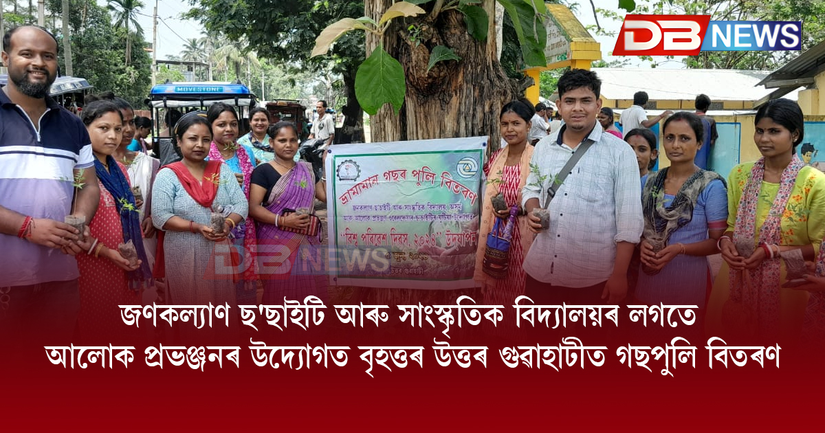সমগ্ৰ বিশ্বতে পৰিবেশ প্ৰদুষণৰ বাবে আজিৰ দিনটোত বিশেষ গুৰুত্ব প্ৰদান কৰি বিশ্ব পৰিবেশ দিৱস উদযাপন কৰা হয়। বিশ্বৰ পৰিবেশ বিশেষ কৈ গ্লোবেল ৰাৰ্মিংৰ প্ৰভাৱৰ পৰা মুক্ত হ’বলৈ সমগ্ৰ বিশ্বতে আজি বিভিন্ন কাৰ্যসূচী পালন কৰাৰ লগতে ৰাইজক সজাগ আৰু সচেতন কৰি তোলা হয়। আজি সমগ্ৰ উত্তৰ গুৱাহাটীত জণকল্যাণ ছ’ছাইটি আৰু সাংস্কৃতিক বিদ্যালয়ৰ লগতে আলোক প্ৰভঞ্জনৰ উদ্যোগত প্ৰায় দুশৰো অধিক মূল্যবান গছ পুলি ভ্ৰাম্যমাণ ভাৱে বিতৰণ কৰা হয়। জণকল্যাণ ছ’ছাইটি আৰু সাংস্কৃতিক বিদ্যালয়ৰ সভাপতি কুমুদ নাথ আৰু উপ-সভাপতি অমিতাভ বৰুৱাৰ উপস্থিতিত আজি বিশ্ব পৰিবেশ দিৱসৰ দিনটোত এই গছপুলি সমূহ বিতৰণ কৰা হয়।