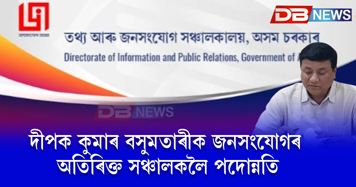 দীপক কুমাৰ বসুমতাৰীক জনসংযোগৰ অতিৰিক্ত সঞ্চালকলৈ পদোন্নতি