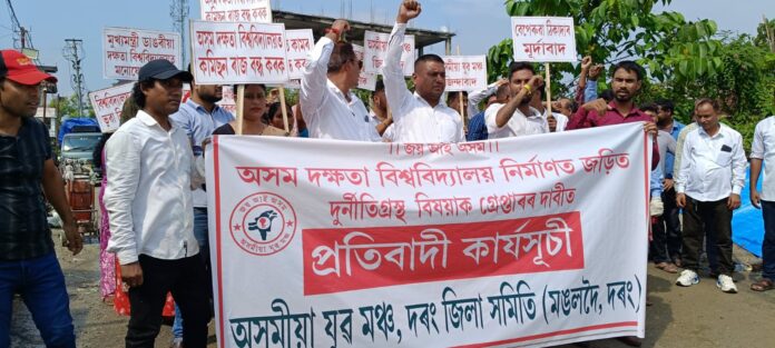 মঙলদৈত নিৰ্মীয়মাণ অসম স্কীল ইউনিভাৰ্চিটিত দুৰ্নীতিৰ অভিযোগ অসমীয়া যুৱ মঞ্চ, দৰং জিলা সমিতিৰ ৷ ইউনিভাৰ্ছিটিখনৰ নিৰ্মাণ আৰম্ভ হোৱাৰে পৰা বিভিন্ন দুৰ্নীতিৰ অভিযোগ আছে। ইতিপূৰ্বে কোৱালিটি টেষ্ট নকৰাকৈ গৃহৰ নিৰ্মাণত ইটা ব্যৱহাৰ কৰাৰ অভিযোগ আছে ঠিকাদাৰৰ বিৰুদ্ধে ৷ সৰ্বত্ৰে দুৰ্নীতি সংঘটিত হোৱাৰ উমান পাই অসমীয়া যুৱ মঞ্চই তথ্য জনাৰ অধিকাৰৰ ভিত্তিত আবেদন কৰি চাৰিবেৰ নিৰ্মাণ আৰু মাটি পূৰন কৰাৰ বাবদ ৮৬ লাখ টকাৰ দুৰ্নীতি সংঘটিত হোৱাৰ তথ্য লাভ কৰি ইতিমধ্যে মঙলদৈ আৰক্ষী থানাত এজাহাৰ দিখিল কৰিছে ৷ চাৰিবেৰ নিৰ্মাণ আৰু মাটি পূৰন কৰা বিতৰ্কিত ঠিকাদাৰ ভাস্কৰ বৰুৱাই চৰকাৰী নীতি নিৰ্দেশনা ভৰিৰে মোহাৰি, চৰকাৰী ৰিভিনো পৰ্যন্ত নিদিয়াকৈ সমুদায় ধন আত্মসাৎ কৰা বুলি অসমীয়া যুৱ মঞ্চই দাবী কৰাৰ লগতে বিতৰ্কিত ঠিকাদাৰ ভাস্কৰ বৰুৱাৰ বিৰুদ্ধে তদন্ত কৰি ব্যৱস্থা গ্ৰহণ কৰিবলৈ দাবী জনায়।