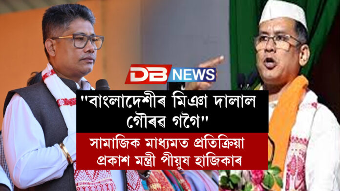 “বাংলাদেশীৰ মিঞা দালাল গৌৰৱ গগৈ” সামাজিক মাধ্যমত প্ৰতিক্ৰিয়া প্ৰকাশ মন্ত্ৰী পীয়ুষ হাজিকাৰ