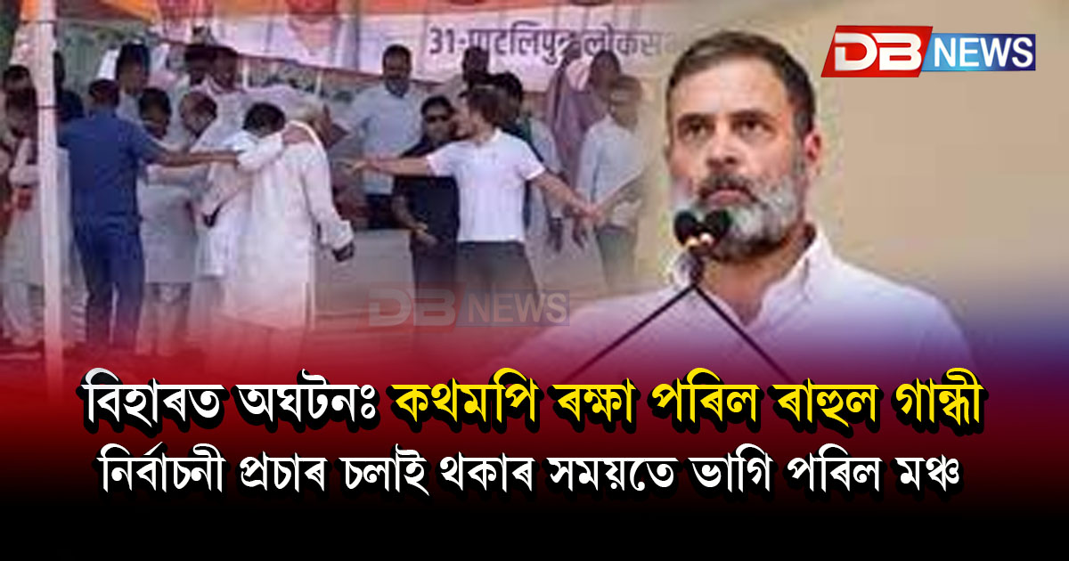 বিহাৰত অঘটনঃ কথমপি ৰক্ষা পৰিল ৰাহুল গান্ধী,নিৰ্বাচনী প্ৰচাৰ চলাই থকাৰ সময়তে ভাগি পৰিল মঞ্চ