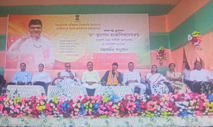 ভাৰত ৰত্ন ড০ ভূপেন হাজৰিকাৰ চতুদৰ্শ মৃত্যুবাৰ্ষিকীৰ আজিৰ দিনটোত পাঁচ সহস্ৰাধিক লোকে সমস্বৰে পৰিবেশন কৰা “মানুহে মানুহৰ বাবে “শীৰ্ষক গীতেৰে মুখৰিত হৈ পৰিল তেজপুৰৰ ঐতিহাসিক চাৰ্চ ফিল্ড ।উল্লেখ্য যে অসম আৰু অসমীয়াৰ স্বাভিমান ,প্ৰাণৰ আপোন শিল্পী গৰাকীৰ মৃত্যুবাৰ্ষিকী উপলক্ষে শোণিতপুৰ জিলা প্ৰশাসনৰ উদ্যোগত আজি পুৱাৰ অনুষ্ঠিত বিশেষ শ্ৰদ্ধাঞ্জলি আৰু স্মৃতিচাৰণ অনুষ্ঠানৰ অন্তিম মূহূৰ্তত চাৰ্চ ফিল্ডত সমবেত হোৱা বিভিন্ন শিক্ষক -শিক্ষয়িত্ৰী ,বিভিন্ন বিভাগৰ বিষয়া -কৰ্মচাৰীৰ লগতে জিলাখনৰ বিশিষ্ট ব্যক্তি সকলে এনেদৰে সমস্বৰে পৰিবেশন কৰিলে সুধাকণ্ঠ গৰাকীৰ মানৱতাবাদৰ বিশ্ব বন্দিত গীত -“মানুহে মানুহৰ বাবে “।