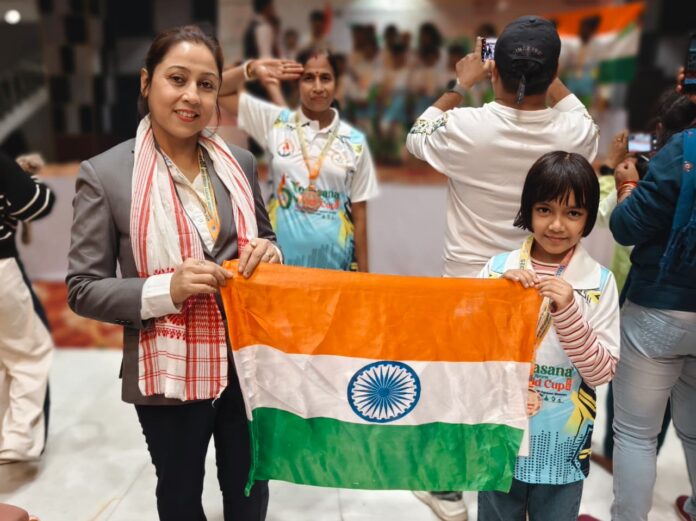 হাৰিয়ানাৰ কৰ্ণালত যোৱা ১৩ নবেম্বৰৰ পৰা ১৬ নবেম্বৰলৈ অনুষ্ঠিত হোৱা আন্তঃৰাষ্ট্ৰীয় যোগ ক্রীড়া প্ৰতিযোগিতাত তেজপুৰৰ এগৰাকী কনমানি শিক্ষাৰ্থীয়ে ব্ৰঞ্জৰ পদকৰ লগতে তেজপুৰৰ এগৰাকী জনপ্ৰিয় যোগ ক্রীড়াৰ সৈতে জড়িত মহিলাই দুটাকৈ ৰূপৰ পদক অৰ্জন কৰি তেজপুৰ তথা ৰাজ্যখনলৈ গৌৰৱ কঢ়িয়াই আনিবলৈ সক্ষম হৈছে ।