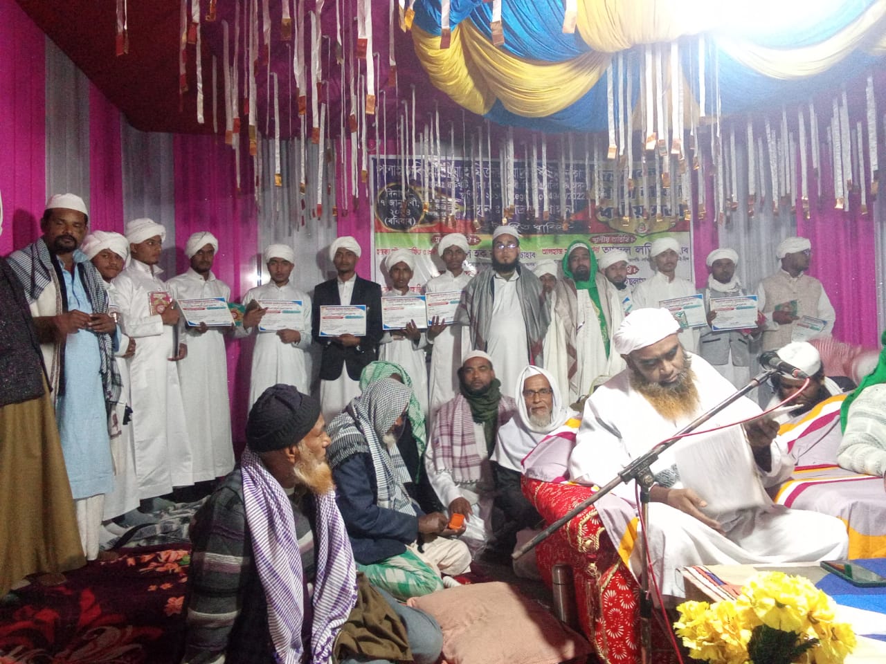 মাদ্ৰাছা খনৰ সম্পাদক মৌলানা আব্দুল মান্নানে আতঁধৰা দস্তৰবন্দী অনুষ্ঠান টোত কেৰাত পাঠ কৰে কাৰী ইছৰাফিলে। নিশা অনুষ্ঠিত হোৱা ধৰ্মীয় সভা খনত বঙাইগাঁও জিলাৰ বাৰঘেৰ মাদ্ৰাছাতুল বানাতৰ মুহতামিম জামিউল হক, কাজিৰঙা জামে মছজিদৰ ইমাম আজাহাৰুল ইছলাম আৰু গুৱাহাটীৰ ধীৰেনপাৰা দাৰুল কোৰআন ৱাছচুন্নাহৰ অধ্যক্ষ ইছৰাফিল কাচিমীয়ে পৱিত্ৰ কোৰআন,নামাজ আৰু ইমানৰ ওপৰত গুৰুত্ব পূৰ্ণ ভাষন প্ৰদান কৰে। নিশা ১১-৩০ বজাত কদমণি টাইটেল মাদ্ৰাছাৰ শ্বেইখুল হাদিছ মূফতি আব্দুল কৰিম কাচিমিৰ আখেৰি দোৱাৰে ধৰ্মীয় সভা খন শেষ হয়। সভাখনত লাহৰিঘাট সমষ্টিৰ বিধায়ক ডা: আছিফ মহম্মদ নাজাৰকে আদি কৰি অঞ্চলটোৰ উলামায়ে কেৰামসকল উপস্থিত আছিল।
