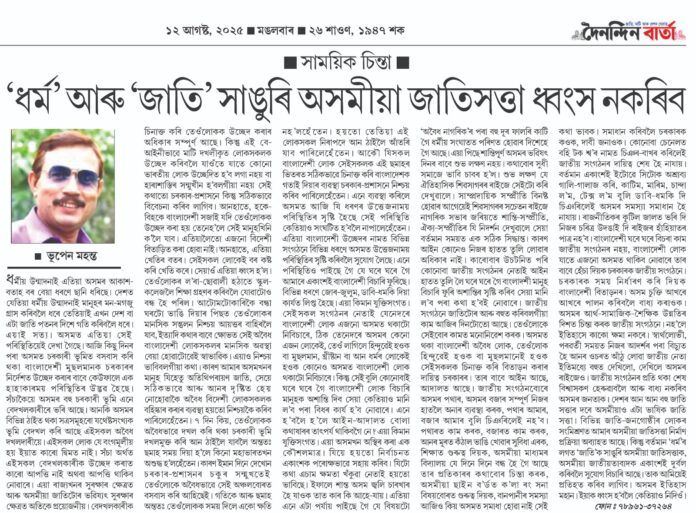 শোণিতপুৰ জিলাৰ শ্বহীদ নগৰী ঢেকীয়াজুলিত আজি আয়োজন কৰা হ’ল “কা’ আন্দোলনৰ পঞ্চ শ্বহীদক” উৎসৰ্গিত এক শ্ৰদ্ধাঞ্জলি অনুষ্ঠান। ঢেকীয়াজুলি আঞ্চলিক ছাত্ৰ সন্থাৰ উদ্যোগত আয়োজিত এই অনুষ্ঠানটোত উপস্থিতিজনাই ছ’বছৰ পূৰ্বে গুৱাহাটী মহানগৰীত নাগৰিকত্ব সংশোধনী আইন (কা’)ৰ বিৰুদ্ধে আন্দোলন কৰোঁতে প্ৰাণ আহুতি দিয়া পাঁচজন সুঠাম যুৱকক সুমৰি গভীৰ শ্ৰদ্ধাঞ্জলি জ্ঞাপন কৰে।
