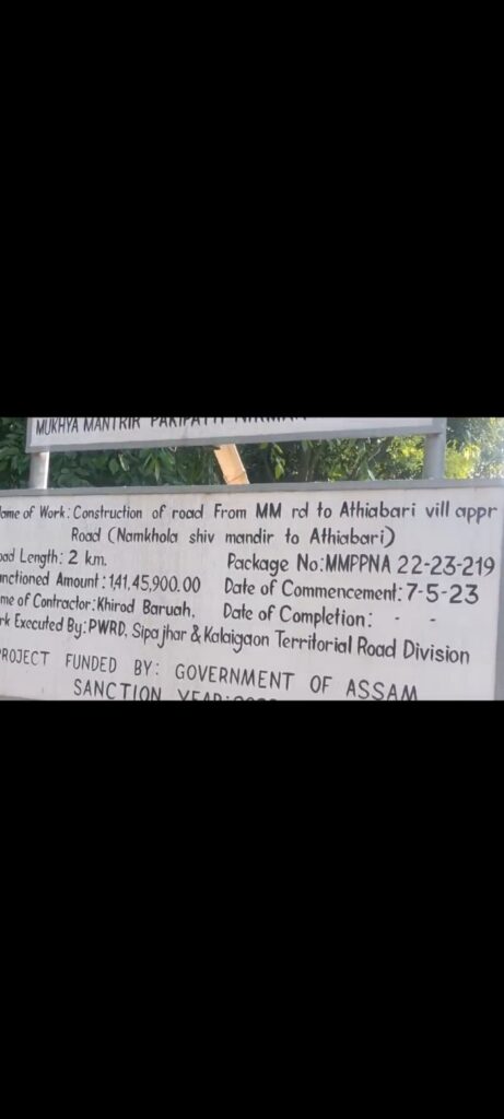 আনহাতে নামখলা শিৱমন্দিৰ চ’কৰ পৰা পথটি নিৰ্মাণৰ বাবে মুখ্যমন্ত্ৰী পকীপথ নিৰ্মাণ আচনীৰ অধীনত অসম চৰকাৰে ১কোটি ৪১ লাখ ৪৫ হাজাৰ৯০০ টকাৰে ২ কিলোমিটাৰ পথ নিৰ্মাণৰ বাবে ধনৰ আৱণ্টন দিছিল আৰু লগে লগে নামখলা অঞ্চলত এক উৎসৱমুখৰ পৰিবেশে বিৰাজ কৰিছিল কিয়নো নামখলা শিৱমন্দিৰৰ পৰা আঠিয়াবাৰী গাওঁলৈ যোৱা পথটি নিৰ্মাণৰ বাবে টকা অনুমোদন কৰিলে অসম চৰকাৰে ৷ পিচে বৃহত্তৰ নামখলা অঞ্চলৰ ৰাইজৰ মূৰত চেচা পানী ধালিলে সাংসদ আৰু বিধায়কে ৷ সেয়ে ৰাইজ ক্ষোভত জাঙুৰ খাই উঠিল ৷ কিয়নো এই পথটি কলাইগাওঁৰ বিধায়ক দুৰ্গাদাস বড়ো আৰু সাংসদ দিলীপ শইকীয়াই নিৰ্মাণৰ শুভাৰম্ভ কৰিছিল বিটি এডিৰ চাবমহিলা পাৰাত ।