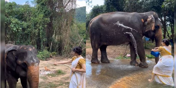 কেই বাল্টি পানীৰে হাতীক গা ধুৱালে অভিনেত্ৰী আদা শৰ্মাই…