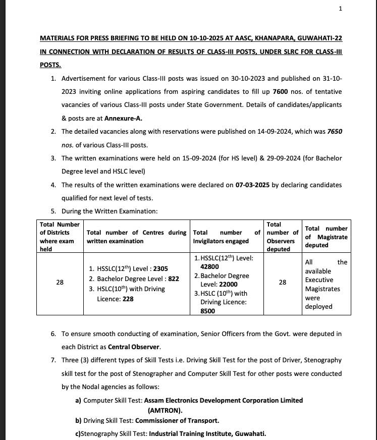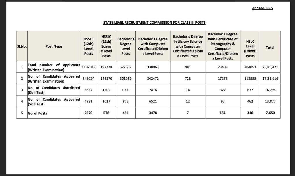 তৃতীয় শ্ৰেণীৰ পদৰ বাবে বাছনিকৃত হ’ল ৭,৬৫০ প্রার্থী। ইয়াৰে ১৫১৬ টা অন্যান্য পিছপৰা শ্ৰেণীৰ অন্তৰ্ভূক্ত