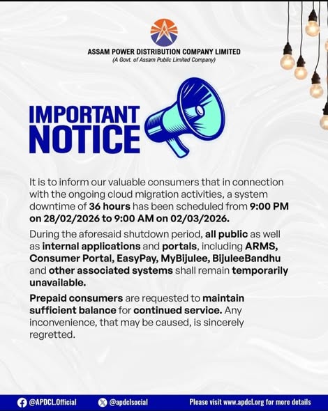 APDCLৰ গুৰুত্বপূৰ্ণ জাননী।