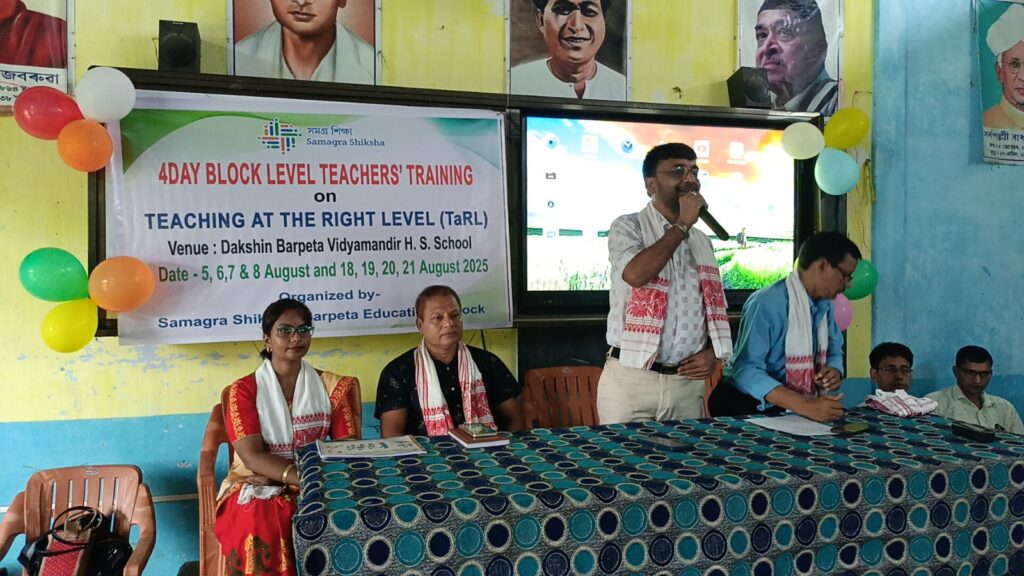 সমগ্ৰ অসমৰ লগতে বৰপেটা (Barpeta News) জিলাৰ বৰপেটা শিক্ষাখণ্ডতো যোৱা ৫ আগষ্টৰ পৰা আৰম্ভ হোৱা টিচিং এট ডা ৰাইট লেভেল চমুকৈ TaRL ৰ প্ৰশিক্ষণ আজি সফলভাৱে সমাপ্ত কৰা হৈছে। বৰপেটা শিক্ষাখণ্ডৰ দক্ষিণ বৰপেটা বিদ্যামন্দিৰ উচ্চতৰ মাধ্যমিক বিদ্যালয়ত প্ৰশিক্ষণৰ শুভাৰম্ভ কৰে বৰপেটা শিক্ষাখণ্ডৰ খণ্ড প্ৰাথমিক শিক্ষা বিষয়া লীলাধৰ দাস আৰু সমগ্ৰ শিক্ষা বৰপেটাৰ শিক্ষক প্ৰশিক্ষণ গোটৰ জিলা আচনি বিষয়া সীতাঙ্গ ডেকাই। উদ্বোধনী অনুষ্ঠানত বিশিষ্ট অতিথি হিচাপে উপস্থিত থাকে ডায়েট বৰপেটাৰ প্ৰৱক্তা ড০ পাপৰি মজুমদাৰ আৰু সমগ্ৰ শিক্ষা বৰপেটাৰ সমাজ জড়িতকৰণ গোটৰ জিলা আচনি বিষয়া নিৰঞ্জন ওজা ।