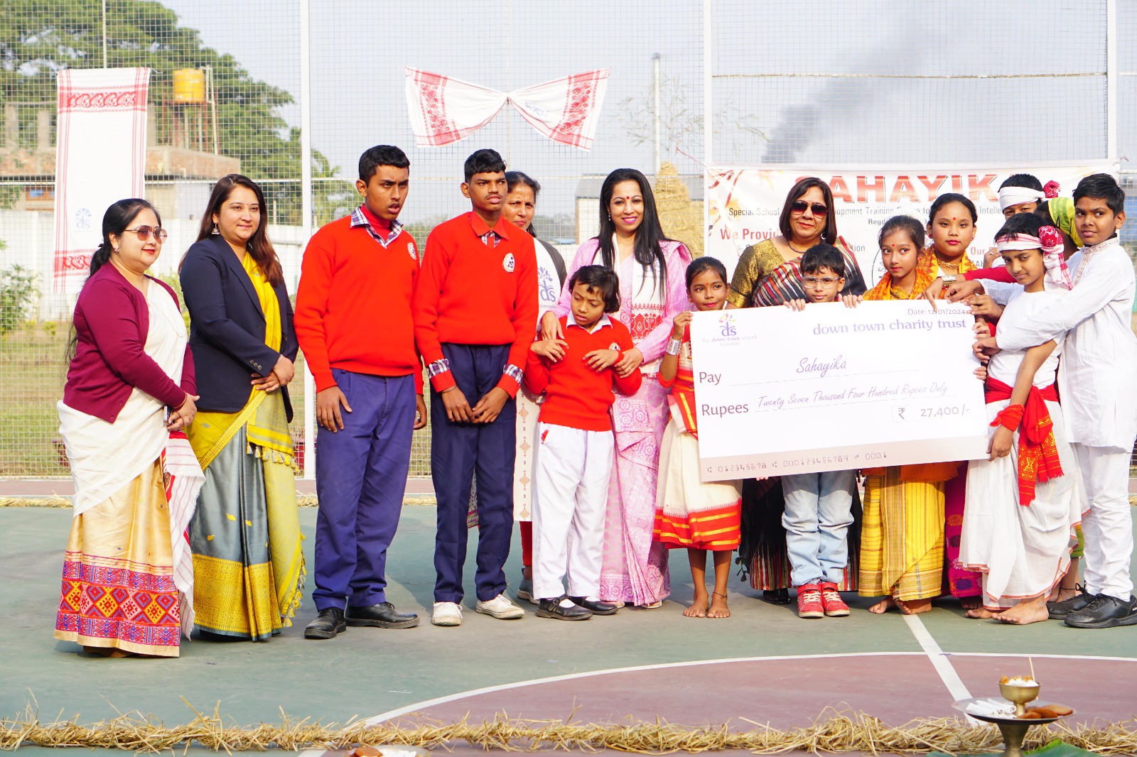 কেৱল উল্লাসেই নহয় সামাজিক দায়বদ্ধতাৰ প্ৰতিও দায়বদ্ধতা দেখা গ’ল। বিদ্যালয়খনৰ শেহতীয়া শিল্প প্ৰদৰ্শনীৰ পৰা পোৱা ধনৰাশি চেক আকাৰত “সাহায়িকা” নামৰ বেচৰকাৰী সংস্থাটোক উপহাৰ দিয়া হয়, যাৰ ফলত তেওঁলোকৰ উদাৰ প্ৰচেষ্টাক সমৰ্থন কৰা হয়। বিশেষভাৱে সক্ষম শিশুৰ শৈক্ষিক আৰু আৰ্থ-আৱেগিক বিকাশৰ দিশত চেষ্টা কৰা এক প্ৰতিষ্ঠান সাহায়িকা।