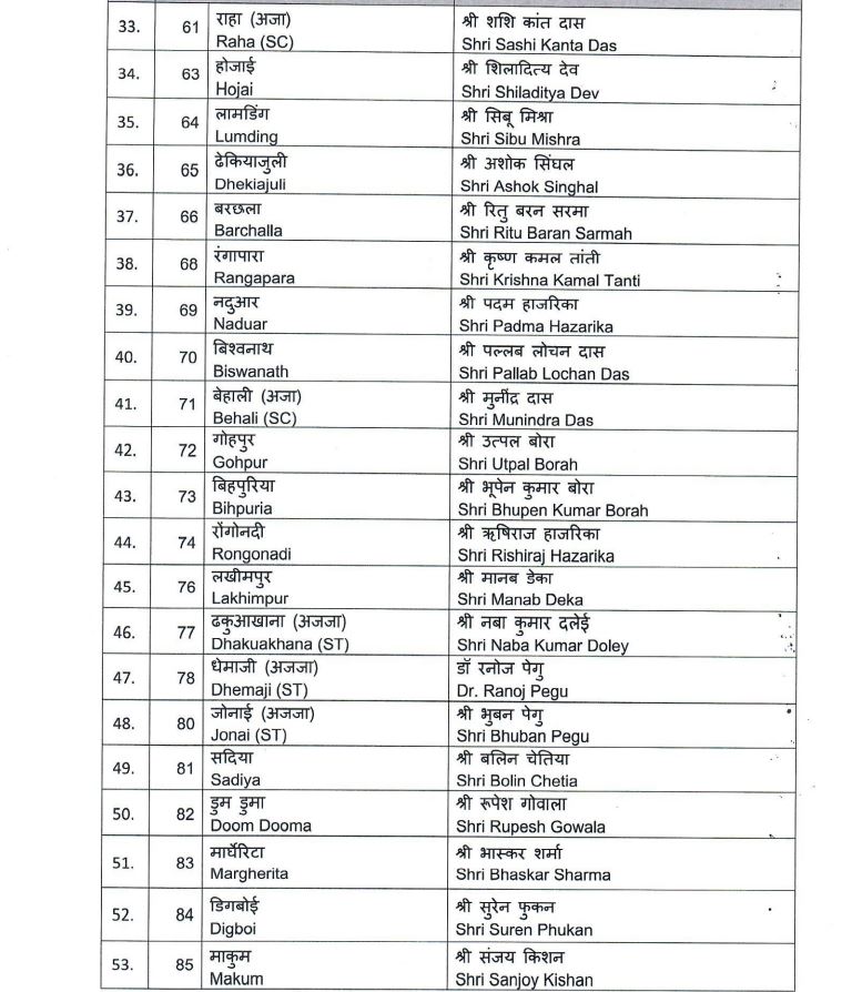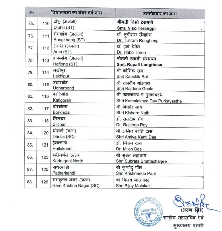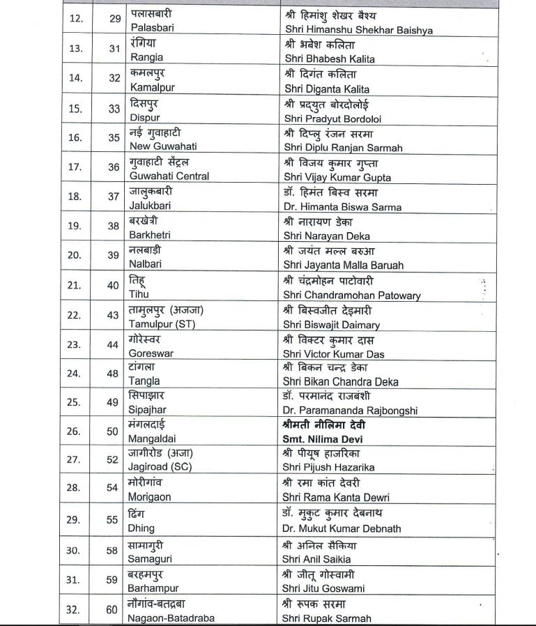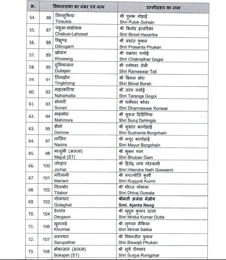 বিজেপিৰ চূড়ান্ত প্ৰাৰ্থী তালিকা ঘোষণা।