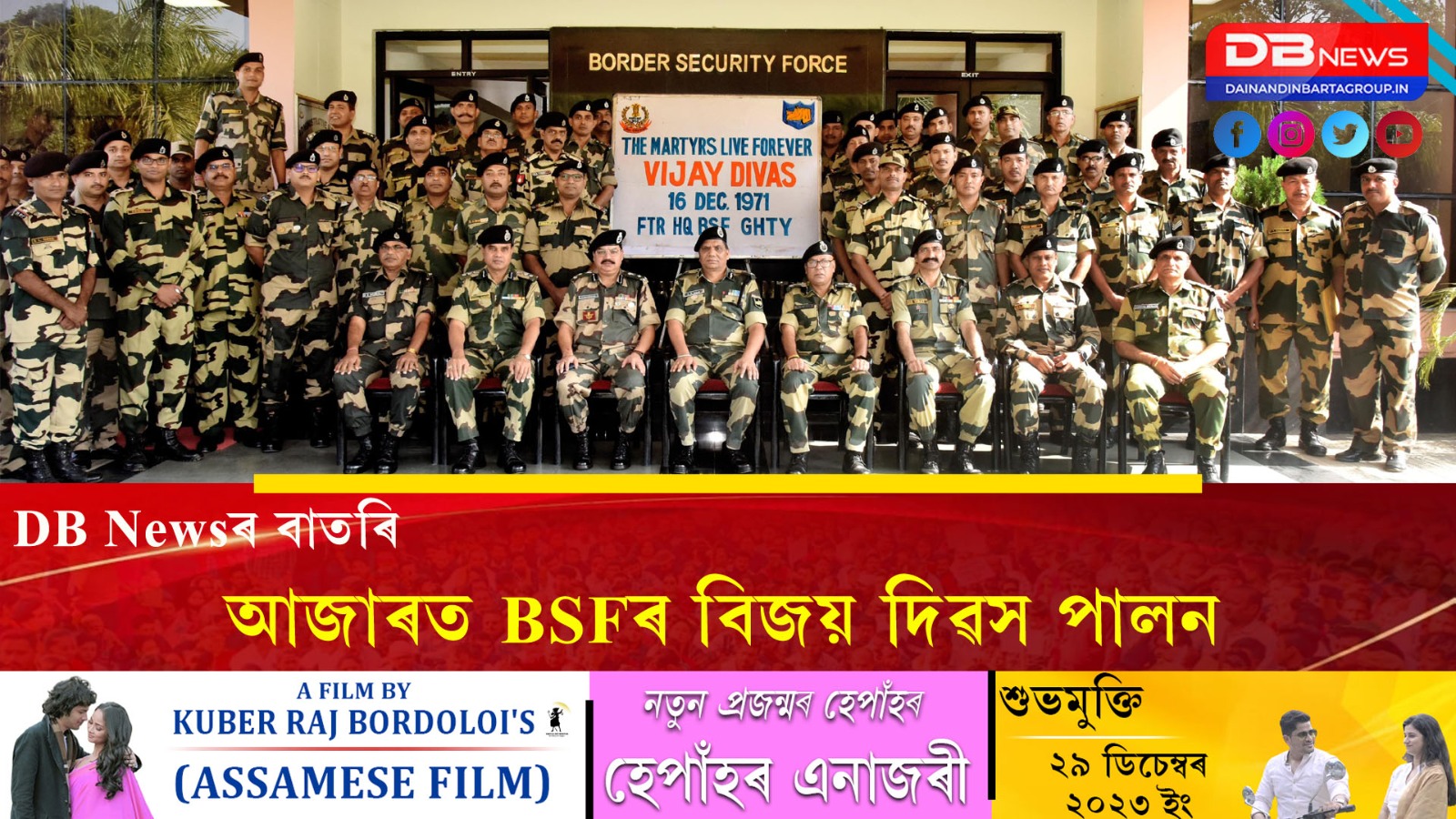 ইয়াৰ অংশহিচাপে সীমান্ত নিৰাপত্তা বাহিনী চমুকৈ বি এছ এফৰ আজাৰা পাটগাঁওস্থিত গুৱাহাটী ফ্ৰন্টিয়াৰ মুখ্য কাৰ্যালয় চৌহদত শনিবাৰে বিজয় দিৱস পালন কৰা হয়।