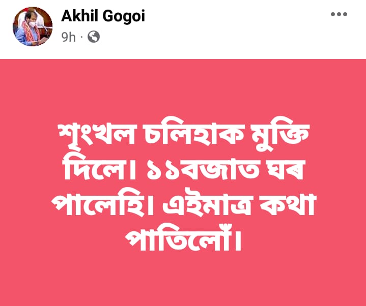 কাৰাগাৰৰ পৰা মুক্তি লাভ বীৰ লাচিত সেনাৰ নেতা শৃংখল চলিহাৰ…