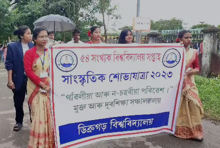 এই সকলোবোৰৰ মাজত সাংস্কৃতিক শোভাযাত্ৰাই দৃষ্টি আকৰ্ষন কৰিলে সকলোৰে। প্ৰতিটো বিভাগৰে ছাত্ৰ-ছাত্ৰীয়ে ভিন্ন ধৰণৰ মন পৰশা থীম লৈ অংশ ল’লে বাৰেৰহনীয়া সাংস্কৃতিক শোভাযাত্ৰাত। সকলো বিভাগৰ মাজত আকৰ্ষণৰ কেন্দ্ৰ বিন্দু হৈ পৰিল সমাজকৰ্ম কেন্দ্ৰৰ সাংস্কৃতিক শোভাযাত্ৰাৰ বিষয়বস্তু। সমকামীতাৰ বিষয় বস্তুৰে বিশেষ চৰ্চা লাভ কৰিছে কেন্দ্ৰটোৱে এনেদৰেই উলহ মালহেৰে ২১ চেপ্তেম্বৰলৈকে চলিল ডিব্ৰুগড় বিশ্ববিদ্যালয়ত বিশ্ববিদ্যালয় সপ্তাহ। ছাত্ৰ একতা সভাৰ বিষয়ববীয়া সকলে নিয়াৰীকৈ উদযাপন কৰিলে প্ৰতিটো মুহুৰ্ত।