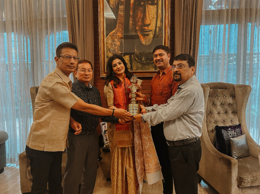 ঘোষণা অনুসৰি বেলতলা ব’হাগী উৎসৱ সমিতিয়ে মুম্বাইৰ বান্দ্ৰাৰ এপার্টমেন্টত জনপ্রিয় অভিনেত্ৰী ৰবীনা টেণ্ডনক সাক্ষাৎ কৰি ড°ভূপেন হাজৰিকা বঁটা প্ৰদান কৰে।