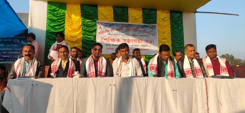 সোণতলী, ২৫ ডিচেম্বৰ : দক্ষিণ কামৰূপ জিলাৰ ছয়গাঁও সমষ্টিৰ অন্তৰ্গত বাতাহিদিয়া চৰ আঞ্চলিক জাতীয় বিদ্যালয় প্ৰাংগনত আজি দিনযোৰা কাৰ্যসূচীৰে এখনি শৈক্ষিক সজাগতা সভা অনুষ্ঠিত হৈ যায় ৷ বাতাহিদিয়া গাঁও পঞ্চায়তৰ এলেকাধীন নয়াপাৰাস্থিত বাতাহিদিয়া চৰ আঞ্চলিক জাতীয় বিদ্যালয়ৰ উদ্যোগত আৰু লুইতপৰীয়া শিশু বিকাশ পৰিষদৰ সহযোগত অনুষ্ঠিত হোৱা শৈক্ষিক সজাগতা সভাত সভাপতিত্ব কৰে বাতাহিদিয়া গাঁও পঞ্চায়তৰ সভাপতি আলতাব আলীয়ে ৷ বাতাহিদিয়া চৰ আঞ্চলিক জাতীয় বিদ্যালয়ৰ অধ্যক্ষ জাকিৰ হোছেইনে উদ্দেশ্য ব্যাখ্যা কৰা শৈক্ষিক সজাগতা সভাত লুইতপৰীয়া শিশু বিকাশ পৰিষদৰ মুখ্য উপদেষ্টা ছামছুল আলম ভূঞা, পৰিষদৰ সভাপতি ছামছুল হক, সম্পাদক আমিন জাহিদুল ইছলামৰ উপৰিও লুইতপৰীয়া শিশু বিকাশ পৰিষদৰ অধীনস্থ কেইবাখনো বিদ্যালয়ৰ শিক্ষকে ভাষন প্ৰদান কৰে ৷