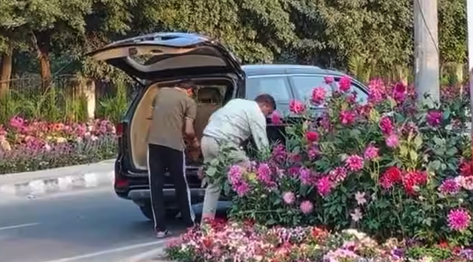 বিলাসী বাহনত অহা অভিজাত চোৰে চুৰি কৰি লৈ গ’ল জি-২০ সন্মিলনৰ বাবে সজাই থোৱা ফুলৰ টাব!