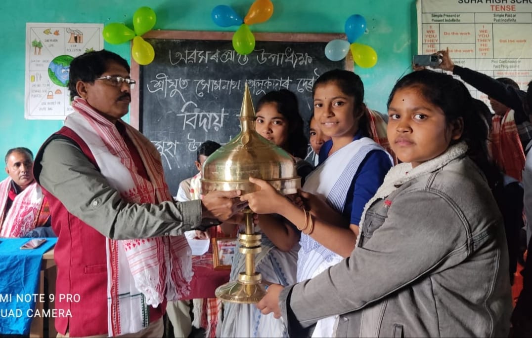 বৰপেটাৰ সুহা উচ্চতৰ মাধ্যমিক বিদ্যালয়ৰ উপাধ্যক্ষ সোমনাথ তালুকদাৰক আজি বিদ্যালয় কৰ্তৃপক্ষই আনুষ্ঠানিকভাৱে বিদায় সম্বৰ্ধনা জনায়৷ যোৱা ৩১ জানুৱাৰীত বৰপেটাৰ সুহা উচ্চতৰ মাধ্যমিক বিদ্যালয়ৰ উপাধ্যক্ষ হিচাপে অৱসৰ গ্ৰহন কৰা কৃতী শিক্ষক, কবি, গল্পকাৰ, অনুবাদক, সাংবাদিক, সাহিত্যিক সোমনাথ তালুকদাৰক আবেগবিহ্বল পৰিবেশৰ মাজতে বিদায় দিয়া হয়।