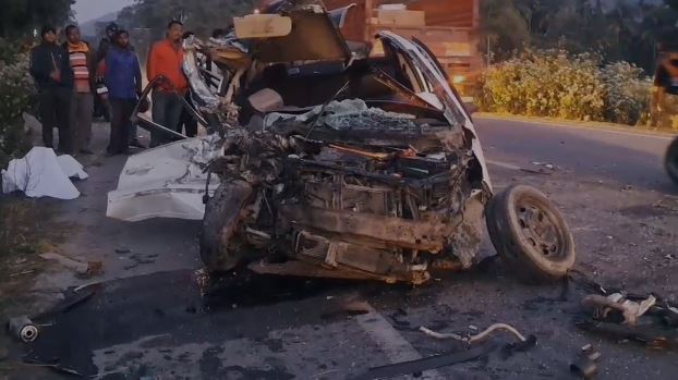 ট্ৰাক আৰু চাৰিচকীয়া ইণ্ডিকো বাহনৰ মাজত মুখামুখি সংঘৰ্ষ।