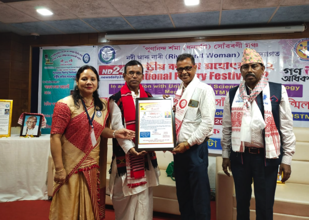 জাৰ্মানীৰ কহিনুৰ ৱৰ্ল্ড অব ৰেকৰ্ডছৰ স্বীকৃতি প্ৰাপ্ত জনপ্ৰিয় কাব্যিক বৌদ্ধিক তথা মানৱ দৰদী অনুষ্ঠান “নদী আৰু নাৰী” শীৰ্ষক বক্তৃতা অনুষ্ঠানত ‘দৈনন্দিন বাৰ্তা’ কাকতৰ সাংবাদিকক সন্মান প্ৰদান