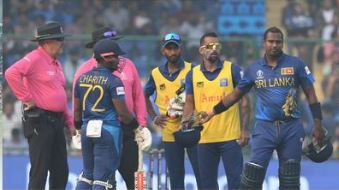 টাইম আউটৰ বলি হৈ পেভিলিয়নমুখী হ’ল এঞ্জেলো মেথিউছ। এটাও বলৰ মুখামুখি নোহোৱাকৈ আউট দিলে আম্পায়াৰে।