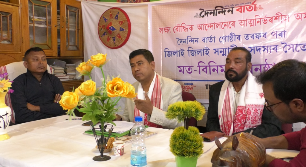 বৌদ্ধিক আন্দোলনেৰে আত্মনিৰ্ভৰশীল অসম গঢ়াৰ লক্ষ্যৰে ’দৈনন্দিন বাৰ্তা’ গোষ্ঠীৰ তৰফৰ পৰা প্ৰতিখন জিলাত থকা সদস্যসকলৰ সৈতে মত বিনিময় কৰাৰ উদ্দেশ্যে আজি উত্তৰ গুৱাহাটীৰ অভয়পুৰত ‘দৈনন্দিন বাৰ্তা’ গোষ্ঠীৰ কামৰূপ জিলাৰ সদস্য সকলৰ লগত প্ৰথমখন সভা অনুষ্ঠিত হৈ যায়।