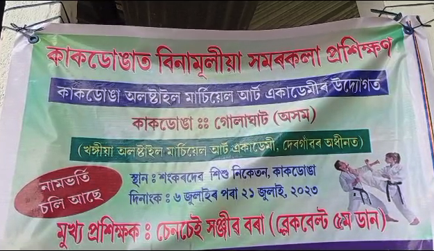 খঙ্গীয়া অ’ল ষ্টাইল মাৰ্চিয়েল আৰ্ট একাডেমিৰৰ অধীনত কাকডোঙা অলষ্টাইল মাৰ্চিয়েল আৰ্ট একাডেমিৰৰ উদ্যোগত ৬জুলাই পৰা ২১ জুলাইলৈ কাকডোঙা শংকৰদেৱ শিশু নিকেতনত অনুষ্ঠিত হৈছে বিনামূলীয়া সমৰকলা প্ৰশিক্ষণ।