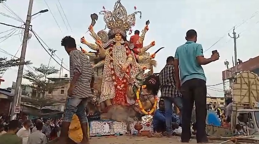 সমান্তৰালভাৱে দেৱীৰ বিসৰ্জনকলৈ ভক্তপ্ৰাণ ৰাইজৰ মাজত দেখা গ’ল ব্যাপক আনন্দৰ পৰিবেশ। ঢেকীয়াজুলি ৰাজহ চক্ৰৰ অন্তৰ্গত প্ৰতিখন দুৰ্গাপূজা উদ্যাপন সমিতিয়ে ঢেকীয়াজুলিৰ ১৫ নং ৰাষ্ট্ৰীয় ঘাইপথত বৃহৎ সমদলেৰে দেৱী দুৰ্গাৰ প্ৰতিমা বিসৰ্জন দিবলৈ বেলশিৰি নদীলৈ লৈ যায়।