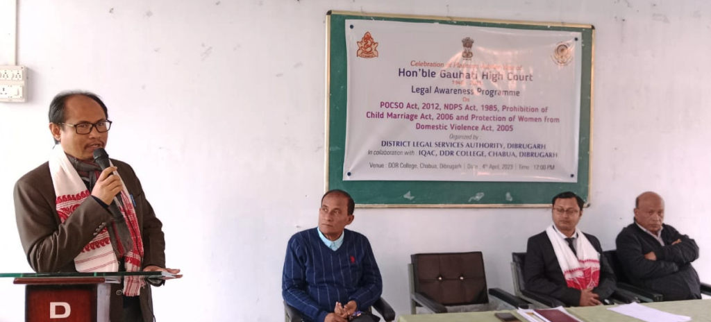 তাৰেই এক অংশ হিচাপে ডিব্ৰুগড় জিলা আইন সেৱা প্ৰাধিকৰণে ডি ডি আৰ কলেজৰ আভ্যন্তৰীণ মান নিশ্চিত কোষৰ সহযোগিতাৰে ডি ডি আৰ কলেজত আইন সজাগতা কাৰ্য্যসূচী ৰূপায়ন কৰে।