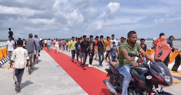 আজিৰ এই কাৰ্যসূচীত মুখ্যমন্ত্ৰী ড০ হিমন্ত বিশ্ব শৰ্মাক সংগ দিয়ে মন্ত্ৰী ৰঞ্জিত দাস, বিধায়ক আব্দুল বাতেন অন্ধকাৰ, প্ৰাক্তন বিধায়ক ভূপেন ৰায়ে।ড° হিমন্ত বিশ্ব শৰ্মাই মুখ্যমন্ত্ৰীৰ আসনত বহাৰ পাছত ২০২২ চনৰ ৫ ফেব্ৰুৱাৰীত তেওঁ সৃজনগ্ৰামলৈ অহাত দলংখনলৈ পুনৰ ২৯ কোটি টকা আবণ্টণ দিয়াত দলংখনৰ নিৰ্মাণ কাৰ্য আৰম্ভ কৰা হয় ৷ আজি সেই দলংখন আনুষ্ঠানিক ভাৱে উন্মোচন কৰাৰ পিছত দলং খনেৰে হাজাৰ হাজাৰ যাত্ৰীৰ আগমন ঘটাত এক উৎসৱ মুখৰ পৰিৱেশৰ সৃষ্টি হয়৷ দলং মুকলিৰ পিছতে অভয়াপুৰীৰ লালমাটি দুৰামাৰীৰ শ্ৰী শ্ৰী গণেশ মন্দিৰ দৰ্শন কৰি বঙাইগাঁও লৈ যায় মুখ্যমন্ত্ৰী গৰাকী।