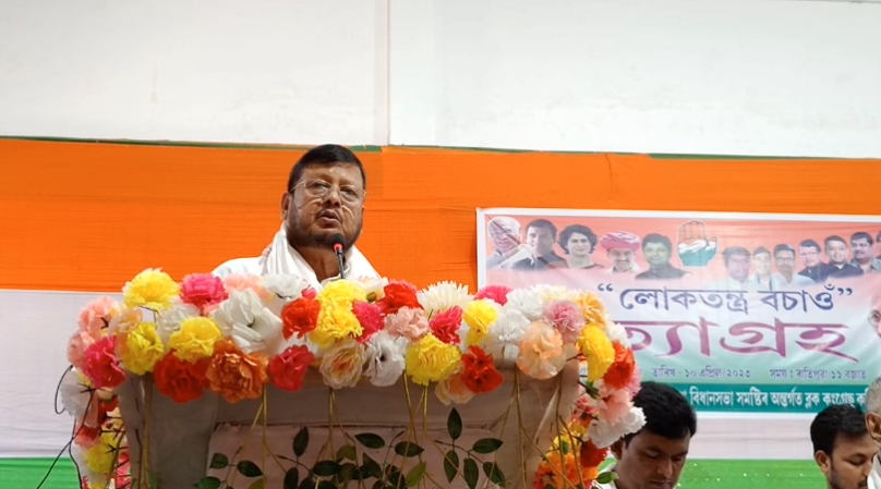 নেতা গৰাকীয়ে আৰু কয় যে, সম্প্ৰতি দেশৰ গণতন্ত্ৰ বিপদত আছে। চৰকাৰক সমালোচনা কৰিলেই মোদী চৰকাৰে ED, CID, NIA আদি লগাই দিয়ে। কংগ্ৰেছৰ যুৱৰাজ ৰাহুল গান্ধী মোদীৰ বন্ধু আদানীৰ কথা কৈ চৰম বিপদৰ সন্মুখীন হৈছে। আজি অনুষ্ঠিত হোৱা কংগ্ৰেছৰ এই সত্যাগ্ৰহ কাৰ্যসূচীৰ জৰিয়তে দেশৰ সৰ্ব সাধাৰণ জনতাক মোদী আৰু আদানীৰ সম্পৰ্কৰ কথা বুজাবলৈ নিৰ্দেশ প্ৰদান কৰে।
