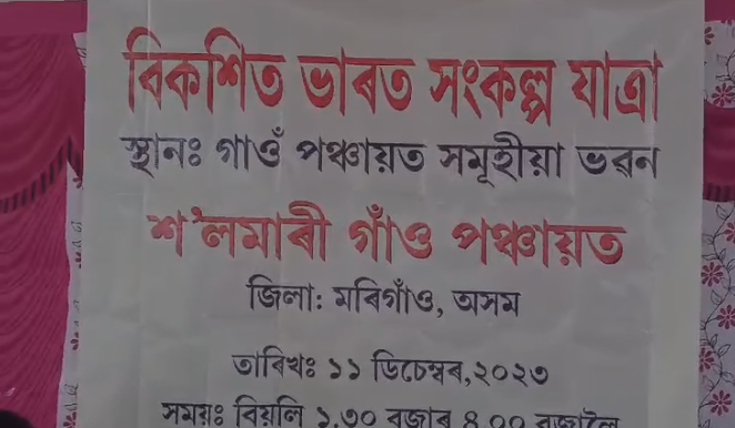 বিকশিত ভাৰত সংকল্প যাত্ৰা কাৰ্যসূচীৰ লগত সংগতি ৰাখি সোমবাৰে মৰিগাঁও জিলা প্ৰশাসন উদ্যোগত শলমাৰী গাঁওপঞ্চায়ত কাৰ্যলয়ৰ প্ৰেক্ষাগৃহ অনুষ্ঠিত হয় বিকশিত ভাৰত সংকল্প যাত্ৰাৰ কাৰ্যসূচী।