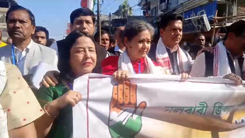 নলবাৰীত ভাৰতীয় কংগ্ৰেছ দলৰ বৃহৎ পদযাত্ৰা