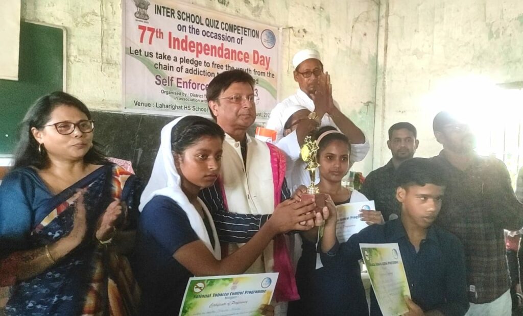 মৰিগাঁও জিলাৰ লাহৰীঘাট উচ্চতৰ মাধ্যমিক বিদ্যালয়ত ” ধঁপাত মুক্ত শিক্ষানুষ্ঠান”ৰ ওপৰত ভিত্তি কৰি এক কুইজ প্ৰতিযোগিতা অনুষ্ঠিত হয়। লাহৰীঘাট অঞ্চলৰ ৭ খন বিদ্যালয়ৰ ছাত্র ছাত্রী সকলে মুঠ ১৬ টা গ্ৰোপত কুইজ প্ৰতিযোগিতাত অংশ গ্রহণ কৰি যৌথ ভাৱে লাহৰীঘাট উচ্চতৰ মাধ্যমিক বিদ্যালয় আৰু তিনিচুকীয়া মাধ্যমিক বিদ্যালয়ে প্ৰথম স্থান আৰু তিনিচুকীয়া মাধ্যমিক বিদ্যালয়ে দ্বিতীয় স্হান লাভ কৰি জিলা আয়ুক্তৰ হাতৰপৰা ট্ৰফী আৰু মানপত্র গ্রহণ কৰে। দুপৰীয়া ১.৪৫ মিনিটত ৭৭ তম স্বাধীনতা দিবস উপলক্ষে চৰকাৰৰ নিৰ্দেশ মৰ্মে ” মেৰে মিট্টি মেৰে দেশ ” কাৰ্যসূচীত জিলা আয়ুক্ত দেবাশীষ শৰ্মাই বৃক্ষ ৰোপন কৰে আৰু শপথ বাক্য পাঠ কৰায়। মুকলি সভা আৰু বঁটা বিতৰণী সভা সঞ্চালনা কৰে বিদ্যালয়ৰ ভাৰপ্ৰাপ্ত অধ্যক্ষ নুৰুল হুছেইনে।