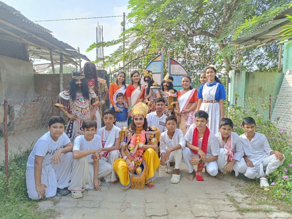 বিশেষকৈ অনুষ্ঠানটিৰ আঁত ধৰা ষষ্ঠ শ্ৰেণীৰ ছাত্ৰী ক্ৰমে অলংকৃতা কাশ্যপ আৰু মূৰ্ছনা বৰাৰ সুন্দৰ বাকশৈলীয়ে সকলোকে মোহিত কৰে ।এই ক্ষেত্ৰত বিদ্যালয়খনৰ শিক্ষক – শিক্ষয়ত্ৰীসকলেও তেওঁলোকক পূৰ্ণ সহযোগিতা আগবঢ়ায় । অনুষ্ঠানভাগ উপস্থাপন কৰাক লৈ ছাত্র-ছাত্ৰীসকলৰ মাজত দেখা যায় ব্যাপক উৎসাহ। অনুষ্ঠানটিত বিভিন্ন চৰিত্ৰত অভিনয় কৰা বিদ্যালয়ৰ ছাত্ৰ – ছাত্ৰীসকল ক্ৰমে – বিদিশা বৰা ( শ্ৰী কৃষ্ণ) , পাহি শইকীয়া ( ৰাধা), প্ৰিয়ংকা বৰা ( গোপী) , ৰিম্পী শইকীয়া ( গোপী) , দিচান বৰা ( সত্ৰাধিকাৰ আৰু শংখচূড় ) , নিয়ৰ নীলিম ( ডেকা সত্ৰাধিকাৰ আৰু শংখচূড়) , ভাৰ্গৱ লামা ( শংখচূড় আৰু গায়ন- বায়ন) ,ধ্ৰুৱজিত শৰ্মা ( মেধি আৰু গায়ন -বায়ন) , ধৰম টকবি ( নামঘৰীয়া আৰু পাঠক ) , ঋতিক এন শিৱম ( পাচনি ) , সৌৰভ জ্যোতি শইকীয়া ( খাটনিয়াৰ ) , দিবাকৰ ডেকা ( আলধৰা) , হৰজিত কাকতি ( সূত্ৰধাৰ) , ৰণবীৰ পাটৰ ( মুক্তিয়াৰ আৰু শংখচূড়) , হীৰক জ্যোতি দাস ( পালধৰীয়া) । অনুষ্ঠানটি আৰম্ভ হয় ছাত্ৰী বনশ্ৰী শইকীয়াৰ সুকণ্ঠত নিগৰা এটি বৰগীতেৰে । তাৰ লগতে অলংকৃতা কাশ্যপ আৰু সুদৰ্শনা বৰাই সত্ৰীয়া নৃত্য পৰিৱেশন কৰি অধিক আকৰ্ষণীয় কৰি তোলে। আজিৰ সমগ্র অনুষ্ঠানটিৰ সন্দৰ্ভত সামগ্ৰিক পৰিকল্পনা আৰু পৰিচালক হিচাপে দায়িত্বত থকা বিদ্যালয়খনৰ প্ৰধান শিক্ষক শিৱ বৰ্মনে কয় যে – ছাত্ৰ-ছাত্ৰীসকলৰ বাবে আগবঢ়োৱা পাঠ্যক্ৰমসমূহক এনেদৰে জীৱন্ত ৰূপত আগবঢ়ালে পাঠৰ বিষয়বস্তু সমূহ তেওঁলোকৰ বাবে অধিক মনোগ্ৰাহী হয় । সেয়েহে বৰ্তমানে প্ৰতিযোগিতামূলক শিক্ষা ব্যৱস্থাৰ মাজত তেওঁলোকক Parrot Learning নকৰাই, তাৰ পৰিৱৰ্তে নাটকীয় ৰূপদানৰ মাজেৰে বা পাঠসমূহক সম্ভৱ হ’লে আলেখ্য প্ৰস্তুত কৰাৰ পঠন-পাঠন শৈলী বাছি ল’লে অধিক ফলপ্ৰসূ হয় । সেয়েহে কেতিয়াবা খেলৰ মাজেৰে আৰু কেতিয়াবা নাট্য ৰূপত বা আলেখ্য ৰূপত তেওঁলোকৰ গুণগত শিক্ষণ পদ্ধতি বাছি ল’ব লাগে । পাঠগ্ৰহণ কৰোঁতে যেনেকৈ আনন্দ পাব পাৰি, তেনেকৈ পাঠদান কৰিও আনন্দ লাভ কৰিব পাৰে । তাৰ বাবে ছাত্ৰ-ছাত্ৰীসকলক শিকোৱাৰ প্ৰতি থাকিব লাগিব আন্তৰিকতা আৰু আগ্ৰহ । আজিৰ অনুষ্ঠানটিৰ বাবে অভিভাৱকসকলে বিদ্যালয়খনিৰ এনে প্ৰয়াসক ভূয়সী প্ৰশংসা কৰে আৰু বিদ্যালয়খনিৰ উত্তৰোত্তৰ কামনা কৰে
