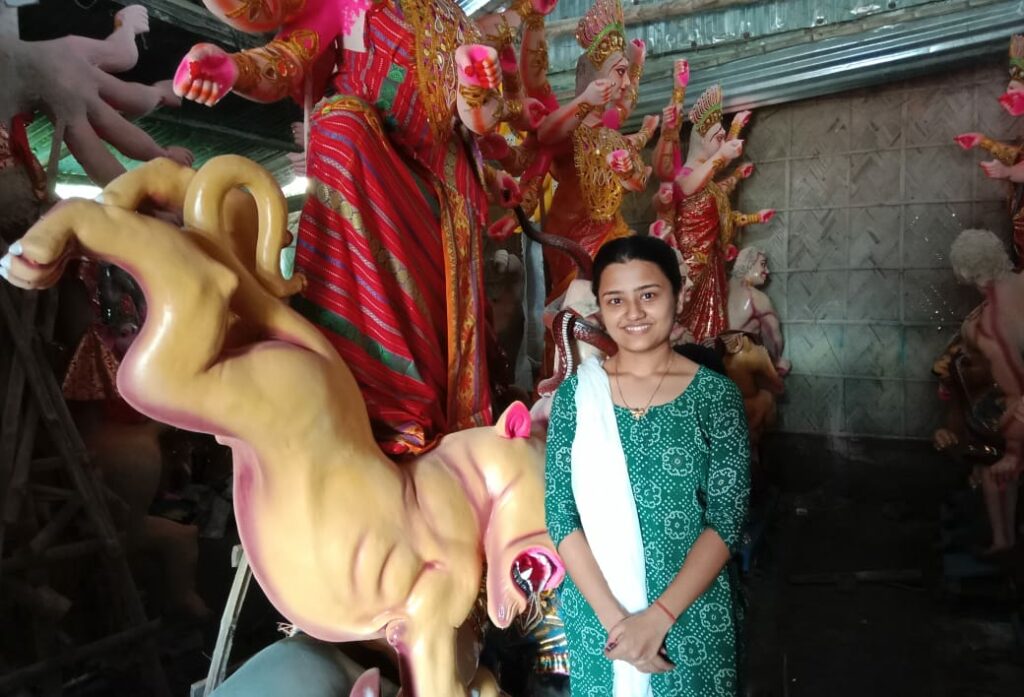 এগৰাকী অধ্যাপিকাৰ হাতৰ পৰশত প্ৰাণ পাইছে দূৰ্গাৰ প্ৰতিমা।।