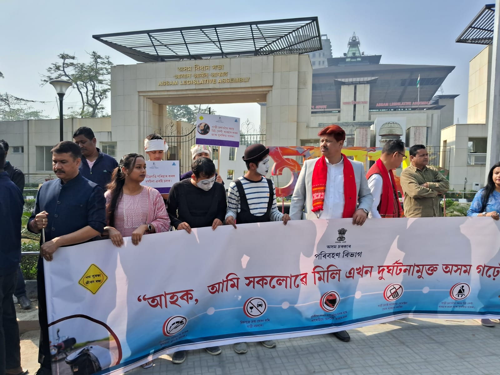 নতুন বছৰত দুৰ্ঘটনামুক্ত অসমৰ আহ্বানেৰে জনতা ভৱন সমীপত পৰিবহণ বিভাগৰ ব্যাপক জনসচেতনতা সভা-পদযাত্ৰা