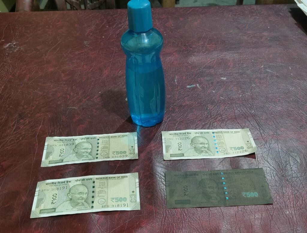 ইতিমধ্যে মাটিয়া আৰক্ষীয়ে ভেজাল নোট সৰবৰাহকাৰী দুজনৰ পৰা চাৰি খন ৫০০ টকীয়া জাল নোট আৰু জাল নোট প্ৰস্তুত কৰা জুলীয়া কেমিকেলৰ এটা বতল উদ্ধাৰ কৰিবলৈ সক্ষম হয়।