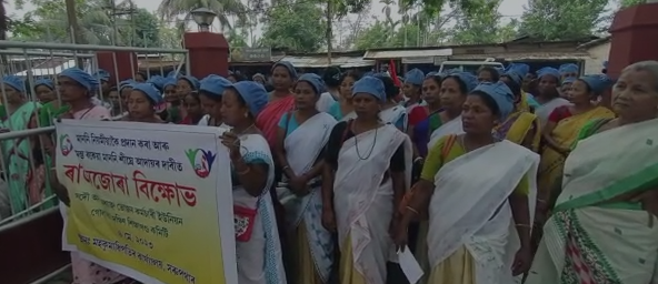 বৃহস্পতিবাৰে সদৌ অসম মধাহ্ন ভোজন কৰ্মচাৰী ইউনিয়নে ৰাজ্যৰ বিভিন্ন প্ৰান্তৰৰ লগতে সংগঠনটোৰ অন্তৰ্গত দক্ষিণ গোলাঘাট শিক্ষা খণ্ড কমিটিৰ সদস্য সকলেও ধনশিৰি মহকুমাৰ সৰুপথাৰতো ৰাজ্য চৰকাৰে বিৰুদ্ধে এক বিক্ষোভ কাৰ্যসূচী হাতত লয় ৷ প্ৰতিবাদী মহিলা সকলে ধনশিৰি মহকুমাৰ সৰুপথাৰৰ নগৰৰ মাজেদি ৰাজ্য চৰকাৰে ৰান্ধনী সকলৰ বকেয়া মাননি অতিশীঘ্ৰে আদায় দিয়া, প্ৰতিমাহৰ প্ৰথম সপ্তাহৰ ভিতৰত পূৰ্বৰ মাহৰ মাননি নিয়মীয়াকৈ আৰু সম্পূৰ্ণকৈ আদায় দিয়াৰ লগতে বছৰটোৰ ১২ মাহৰ বাবে মাননী প্ৰদান কৰা আদি শ্ল’গানেৰে ধনশিৰি মহকুমাৰ মহকুমাধিপতিৰ কাৰ্যালয়লৈকে প্ৰতিবাদী কাৰ্যসুচী ৰূপায়ন কৰে৷