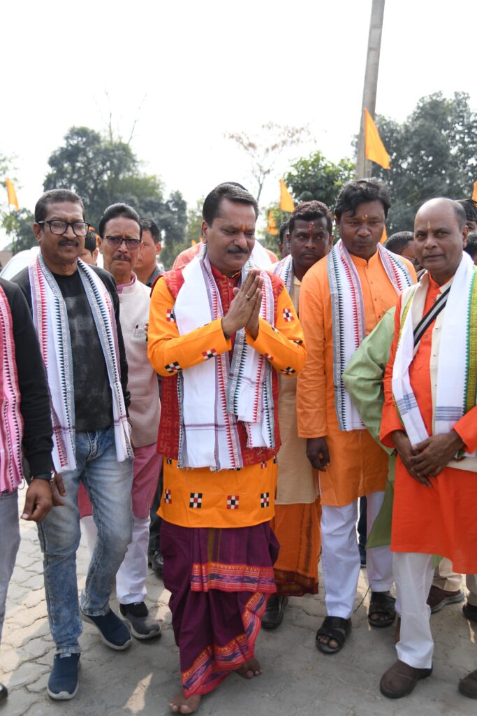 ঢেকিয়াজুলি, ১৫ ফেব্ৰুৱাৰী: ৰাজ্য চৰকাৰৰ গৃহ নিৰ্মাণ আৰু নগৰ পৰিক্ৰমা তথা জলসিঞ্চন বিভাগৰ মন্ত্ৰী তথা ঢেকিয়াজুলি সমষ্টিৰ বিধায়ক অশোক সিংহলে আজি সমষ্টিটোৰ তিনিখৰীয়া চাহ বাগিচাত নৱনিৰ্মিত মহাপ্ৰভু শ্রীশ্রী জগন্নাথ মন্দিৰৰ বিগ্রহ প্ৰাণ প্রতিষ্ঠা মহোৎসৱত অংশগ্ৰহণ কৰে। উল্লেখযোগ্য যে মন্ত্ৰী সিংহলৰ বিশেষ প্ৰচেষ্টাত তথা ৰাইজৰ সহযোগত পুৰীৰ জগন্নাথ মন্দিৰৰ আৰ্হিত তিনিখৰীয়া চাহ বাগিচাৰ এক বিশাল এলেকাত এই মন্দিৰ নিৰ্মাণ কৰি উলিওৱা হৈছে।