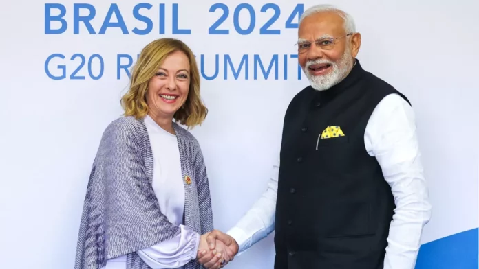 জি-২০ সন্মিলনত অংশগ্ৰহণৰ বাবে সোমবাৰে ব্ৰাজিলত উপস্থিত হয় প্ৰধানমন্ত্ৰী নৰেন্দ্ৰ মোদী। ইয়াত প্ৰধানমন্ত্ৰী মোডী আৰু ইটালীৰ প্ৰধানমন্ত্ৰী জৰ্জিয়া মেল’নিৰ মাজত এক বৈঠক হয়। এই বৈঠকত ভাৰত আৰু ইটালীৰ মাজত আগন্তুক পাঁচ বছৰৰ বাবে এক কৰ্ম পৰিকল্পনা ৰচনা কৰা হয়। এই পৰিকল্পনাত প্ৰতিৰক্ষা, বাণিজ্য, স্বচ্ছ শক্তি আৰু সংযোগকে ধৰি কেইবাটাও নিৰ্দিষ্ট পদক্ষেপৰ ৰূপৰেখা দাঙি ধৰা হয়।