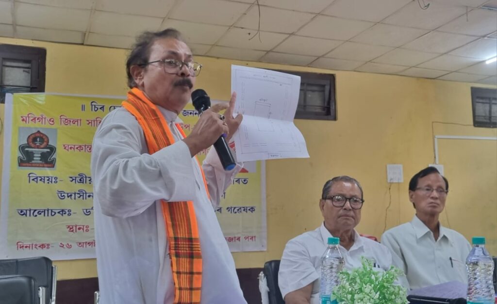 আদৰণি ভাষণ প্ৰদান কৰি ঘনকান্ত বৰুৱা মহাবিদ্যালয়ৰ অধ্যক্ষ ড০ বিষ্ণুপ্ৰসাদ উপাধ্যায়ে গৱেষণা উপ-সমিতিৰ এই গুৰুত্বপূৰ্ণ পদক্ষেপক আদৰণি জনায় আৰু শলাগ লয়। আলোচক হিচাপে উপস্থিত থাকি জাগীৰোড মহাবিদ্যালয়ৰ অৱসৰপ্ৰাপ্ত অধ্যাপক, জাগীৰোড সত্ৰীয়া সংগীত বিদ্যালয়ৰ অধ্যক্ষ তথা মৰিগাঁও জিলা সাহিত্য সভা গবেষণা উপ সমিতিৰ সভাপতি বিশিষ্ট সত্ৰীয়া সংস্কৃতিৰ গৱেষক ড০ খগেন শৰ্মাই উক্ত বিষয়ৰ ওপৰত তথ্য সমৃদ্ধ বক্তব্য আগবঢ়াই।