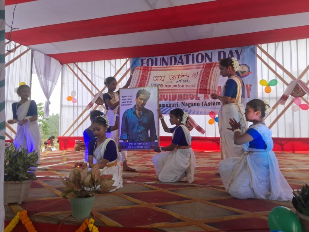 প্ৰচণ্ড শীতৰ মাজতে বিদ্যালয় খনৰ শিক্ষাৰ্থী সকলক সাংস্কৃতিক অনুষ্ঠান পৰিবেশনৰ উদ্দেশ্যেৰে ৰঙীন সাজ পোছকৰে বিদ্যালয় প্ৰাংগণত উপস্থিত হয়হি। দিনযোৰা কাৰ্যসূচীৰে অনুষ্ঠিত প্ৰতিষ্ঠা দিৱসৰ পুৱা পতাকা উত্তোলনৰ পাছতে
