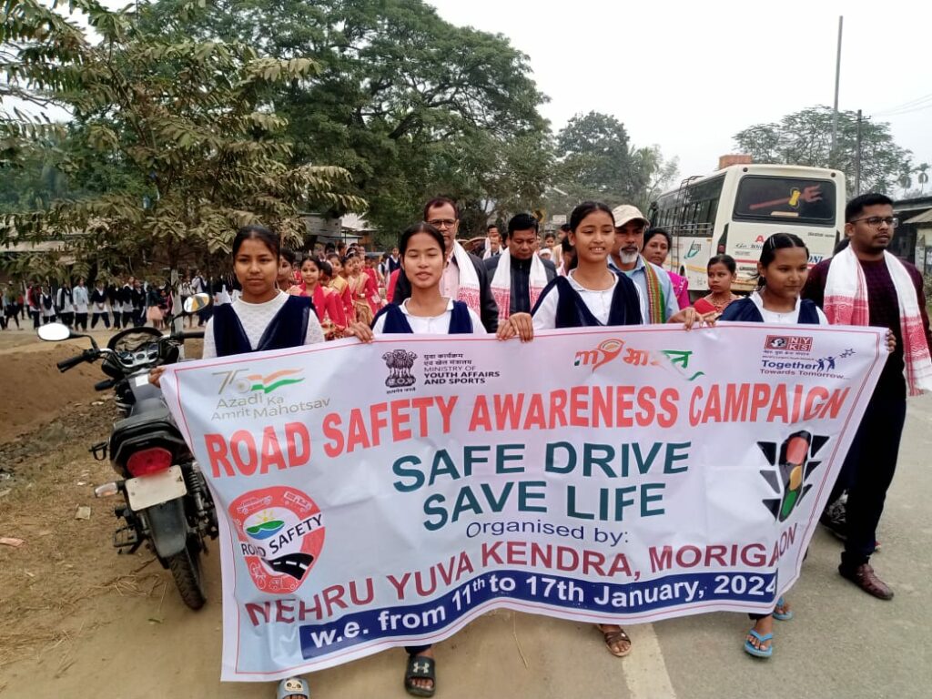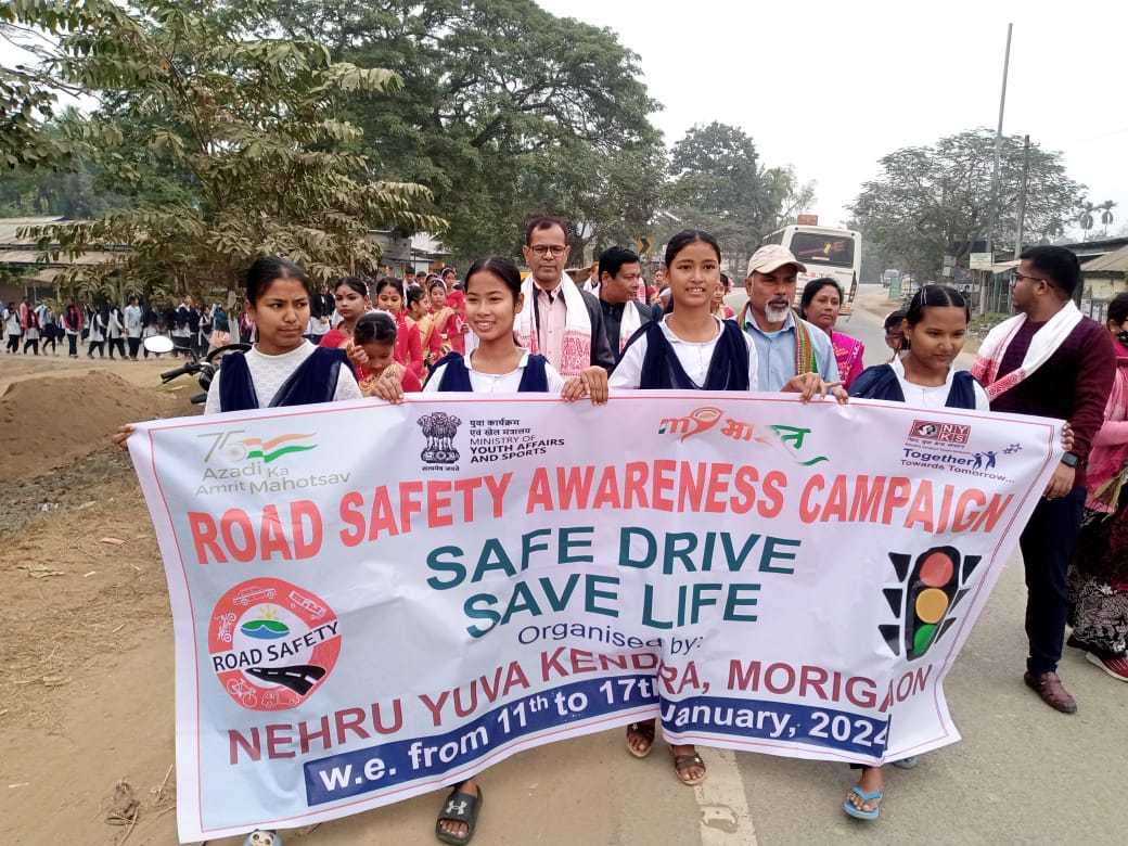 মৰিগাঁও জিলা নেহেৰু যুৱ কেন্দ্ৰৰ উদ্যোগত জিলা প্ৰশাসনৰ প্ৰত্যক্ষ সহযোগত মৰিগাঁও জিলাৰ বিস্তৃত এলেকা মায়াবজাৰ, বিহুতলি, শনি বজাৰ চাৰিয়ালি, মায়ং, মৈৰাবাৰৱ, লাহৰিঘাট, নাৰায়ণ বজাৰ, দলংঘাট, জাগীৰোড বজাৰৰ এলেকাত অৰ্ধশতাধিক স্বেচ্ছাসেৱক-সেৱিকাই হাতে-হাতে বেনাৰ, প্ৰচাৰ পুস্তিকা আদি লৈ পথচাৰীসকলক, যান-বাহনৰ চালক, পৰিচালক, যাত্ৰী লগতে ৰিক্সাচালক, অট’চালক সকলোকে যান-বাহন আইনৰ সুৰক্ষা, যান-বাহন আইনৰ বিভিন্ন দিশ,পথ সুৰক্ষা, নিয়ন্ত্ৰণ গতিত যান-বাহন চলোৱা, ট্ৰেফিক চিগনেল মানি চলা, দুচকীয়া বাহনৰ চালক আৰু যাত্ৰীয়ে হেলমেট পৰিধান কৰা, চাৰিচকীয়া বাহনৰ চালক আৰু যাত্ৰীয়ে চিটবেল ব্যৱহাৰ কৰা, চালকে মাদকদ্ৰৱ্য ব্যৱহাৰ কৰি গাড়ী নচলোৱা,যান-বাহন চলোৱাৰ সময়ত মোবাইল ফোন ব্যৱহাৰ নকৰা আদি বিভিন্ন পথ সুৰক্ষাৰ বিষয়ক সচেতনতা সৃষ্টিৰ বাবে আহ্বান জনায় ।