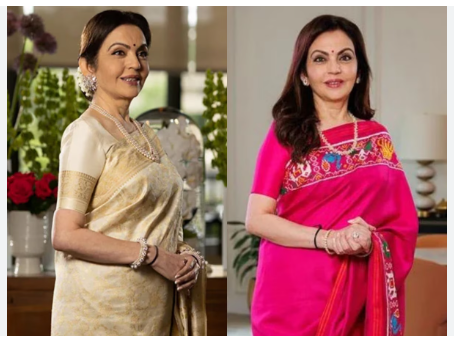 ইয়াৰ বাহিৰেও যেতিয়া নীতা আম্বানীয়ে উপ-ৰাষ্ট্ৰপতি কমলা হেৰিছৰ ৰাজ্যিক দুপৰীয়াৰ আহাৰত উপস্থিত হয়, তেতিয়া তেওঁ পিন্ধিছিল একন গোলাপী ৰঙৰ শাৰী। পাটন জিলাৰ এই বিখ্যাত পাটোলা শাৰী ৰিলায়েন্স ফাউণ্ডেশ্যনৰ গৃহ দেশৰ পৰা লোৱা হৈছে, য’ত ভাৰতীয় কলা-কৃষ্টিৰ প্ৰচাৰ হয়। এই শাৰীখনক নিৰ্মাণ কৰিবলৈ ৬ মাহ সময় লাগিছিল।
